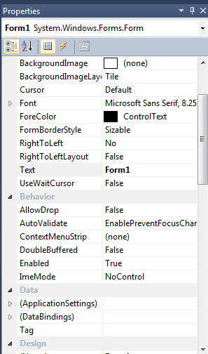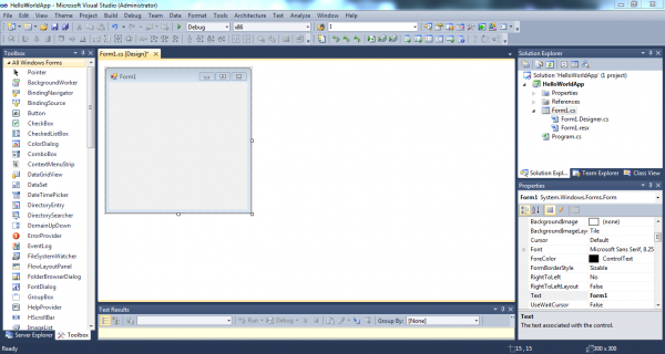 ফর্মের বামপাশে Toolbox যেখান থেকে আপনি বিভিন্ন কন্ট্রোলগুলো নিয়ে আপনার মত UI (User Interface) ডিজাইন করতে পারবেন। প্রথমবার Toolbox দেখতে না পেলে ভিসুয়াল স্টুডিওর View option এ ক্লিক করে Toolbox টি নিয়ে আসতে পারবেন। ফর্মের ডানপাশের নিচের দিকে আছে Properties যেটার মাধ্যমে আপনি ফর্মের বিভিন্ন properties সেট করতে পারবেন।