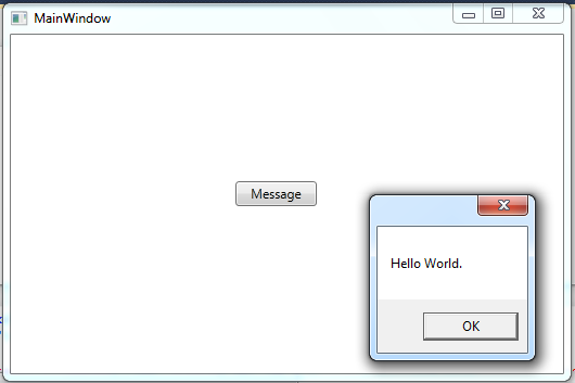 এবার Windows Form এর মতো ফর্মের উপর থাকা বাটনের উপর ডাবল ক্লিক করুন। ক্লিক করলে আপনি messageButton_Click(object sender, EventArgs e) নামে একটি খালি method দেখতে পাবেন।মেথডটিতে MessageBox.Show() তে Hello World message টি লিখলাম: