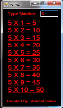 ৭। এখন F5 বাটন টি চেপে প্রোগ্রামটি রান করুন এবং শুধু টেক্সট বক্সটিতে নাম্বার লিখুন আর দেখুন সফটওয়্যার টি নামতা দেখাচ্ছে।