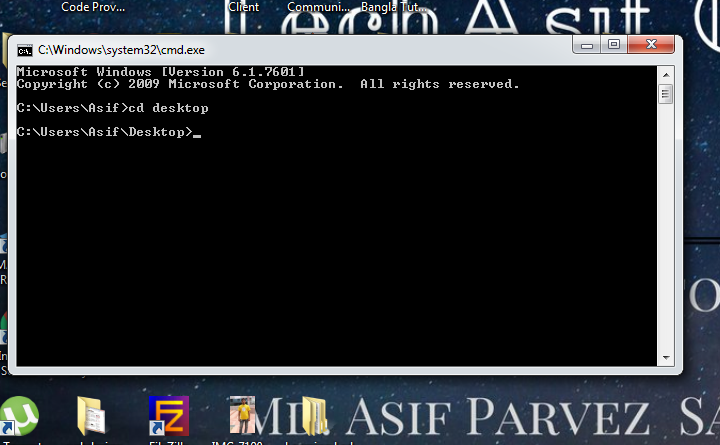 ওকে করে ওপেন করুন। এখানে টাইপ করুন cd desktop ইন্টার মারুন। আজকের জন্য প্রোগ্রাম টা ডেক্সটপ এ সেভ করবেন।