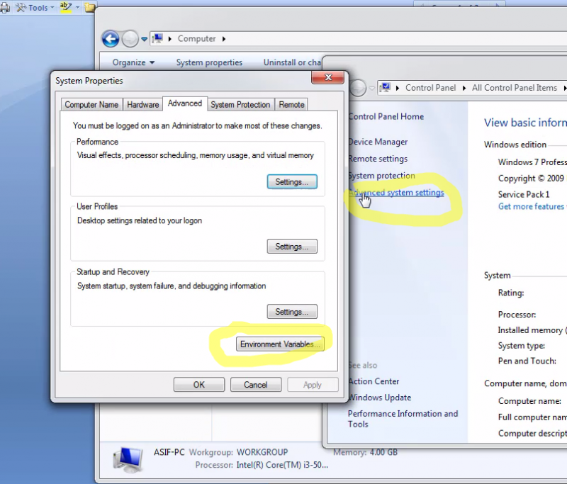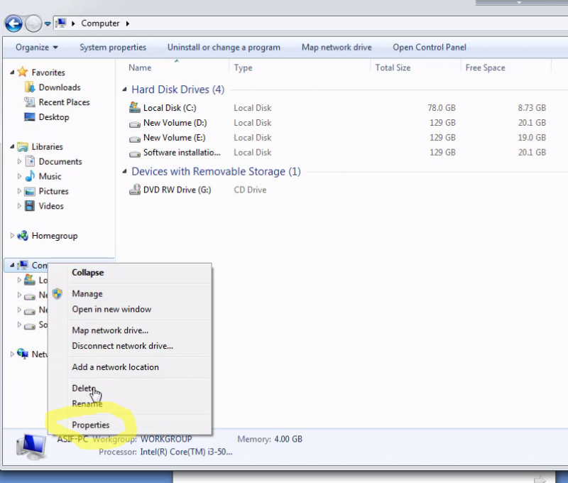 my computer এ রাইট বাটন ক্লিক করি এর পর properties এ ক্লিক করি নিচের মত।