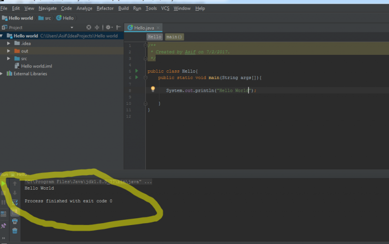 আগের দিনের প্রোগ্রামটি আমরা আজ রান করছি তবে সেতি IDE এর মাধ্যমে। আগামি দিন থাকে আমরা কোড গুল বুঝার চেস্টা করব এবং বুঝব। যদিও আজথাকে বুঝার কথা ছিল কিন্তু আমার মনে হয় IDE setup করার পর থেকে বুঝা ভাল হয়।