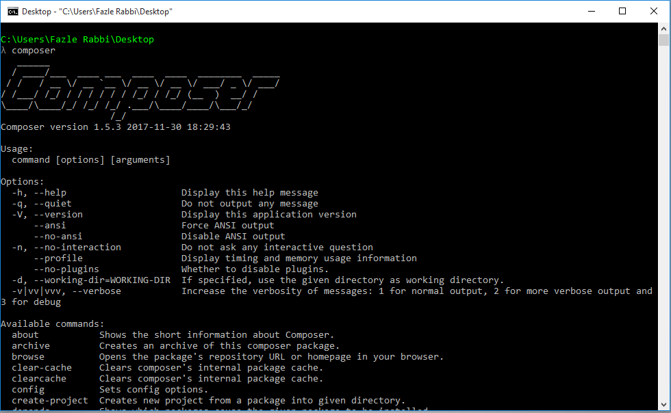টারমিনাল বা সিএমডি ওপেন করে টাইপ করুন composer