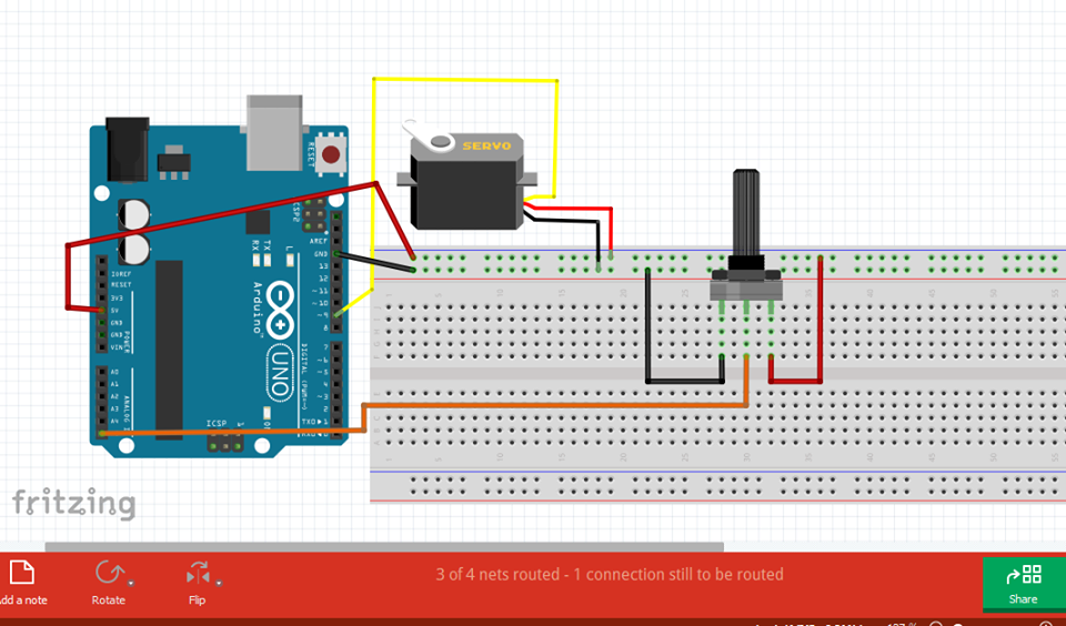 ডিজিটাল সিগ্নাল রাইট এ আমরা পটেনশিয়মিটার থেকে রিড করা সিগ্নাল সারভো মোটর এ রাইট করব।