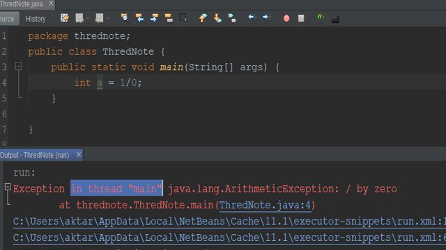 উপরে ইরর এর মধ্যে বলতেছে আমদের মেইন থ্রেড এর মধ্যে একটি একসেপশন আছে।