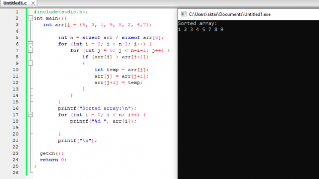 এখন অ্যারের সকল ইলিমেন্টের সাথে সাথে সকল ইলিমেন্টের তুললা করা হয়ে গেছে। আমরা লক্ষ করলে দেখব আমাদের অ্যারেটির সংখ্যাগুলো বড় থেকে ছোট আকারে সাজানো হয়ে গেছে।
