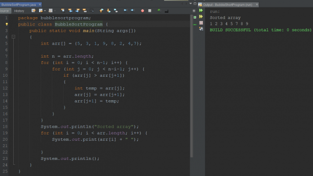 যেহেতু আমরা অ্যালগরিদমটি কিভাবে কাজ করে বুঝতে পেরেছি। তাই এবার আমরা প্রোগ্রামিং এর সাহায্যে বাবল সর্ট অ্যালগরিদমটি সমাধান করব। আমরা এখানে জাভা এবং সি দুটি ল্যাংগুয়েজের এর সাহায্যে প্রোগ্রামটি সমাধান করে দেখিয়েছি।