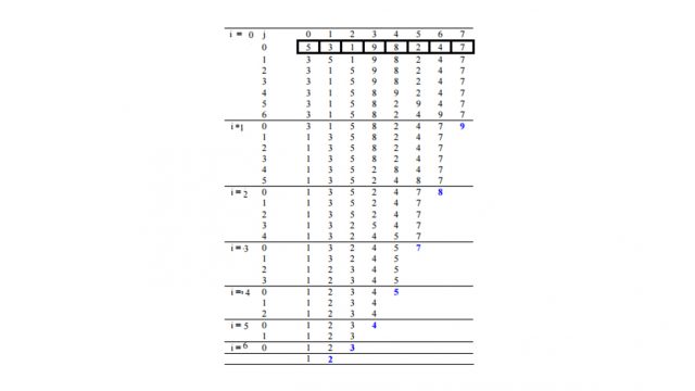 আমরা যেহেতু আগেই বলেছি আমরা 9 পর্যন্ত তুলনা করব। এখানে আমরা লক্ষ করলে দেখব সবছেয়ে ডানের সংখ্যাটি 9 যা সব চাইতে বড়। যেহেতু এখানে সবছেয়ে বড় সংখ্যা 9 সবার শেষে চলে এসেছে তাই আর আমাদের 9 পর্যন্ত যাওয়ার প্রয়োজন নাই। এবার আমরা শুরু থেকে আবার 8 পর্যন্ত তুলনা করা শুরু করব।