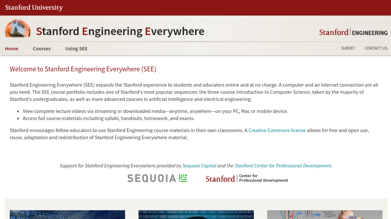 Stanford University এর ওয়েব সাইটে সবকিছুই যে ফ্রিতে পারবেন তা কিন্তু নয়, তাদের Stanford Engineering Everywhere (SEE) থেকে আপনারা বিভিন্ন কোর্স ফ্রিতে করতে পারবেন। আর এই কোর্সটি ক্রিয়েটিভ কমন্স লাইসেন্সের এর অধীনে প্রকাশিত হয়েছে, আর SEE এর সমস্ত ম্যাটেরিয়াল হচ্ছে ফ্রি এবং পুনরায় ব্যবহারের জন্য উন্মুক্ত। যদি আপনি আরও ডিটেইলস জানতে চান তাহলে ক্রিয়েটিভ কমন্স লাইসেন্স চেক করুন।