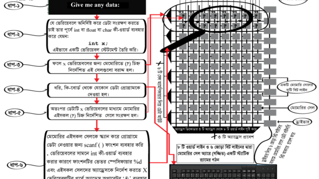 কী-বোর্ডের প্রতিটি বোতামে চাপ দিলে ৮ বিটের একটি করে অ্যাসিক কোড (যেমন: কী-বোর্ড থেকে A ক্যারেক্টারে বা বোতামে বা ডেটায় চাপ দিলে অ্যাসকি কোড 01000001 সৃষ্টি হয়) সৃষ্টি হয়। প্রোগ্রামে আমরা যেসকল ডেটা ইনপুট করায় তারা প্রাথমিকভাবে কম্পিউটারের মেমোরি (RAM) তথা মেমোরির সেলে গিয়ে জমা হয়। অন্যদিকে, RAM এর ভিতর থাকে কোটি কোটি সেল (যেমন: 2GB র একটি SRAM মেমোরিতে ১৬, ০০০, ০০০, ০০০ টি সেল) থাকে যারা আবার ফ্লিপ-ফ্লপ বা ন্যান্ড গেইট বা নর গেইট দ্বারা তৈরি হয় এবং প্রতিটি সেলেরই একটি করে আলাদা আলাদা অ্যাড্রেস থাকে যাকে সেল অ্যাড্রেস বলে।