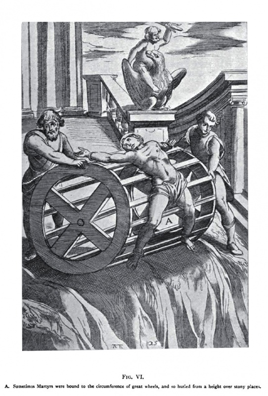 বিভব শক্তিকে কাজে লাগিয়ে প্রাচীন রোমান ক্যাথলিকরা মানুষের কার্যকর করত। এটি একটি রোমান টর্চার ডিভাইস। একটি ভারী কাঠের গোলাকার ফ্রেমের সাথে দন্ডপ্রাপ্তকে বাঁধা হত।