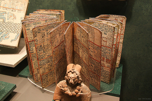 তারা অসংখ্য বইয়ে তাদের ইতিহাস লিখে রেখেছিল, কিন্ত ১৫৬২ সালে ইউকতান বিশপ ফ্রে ডিয়েগো দে লানদা এর নির্দেশে সমস্ত বই ধংস করা হয় । শুধুমাত্র তিনটি বই ধংসের হাত থেকে রক্ষা পায়।