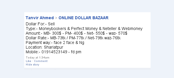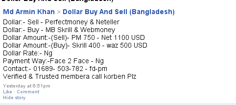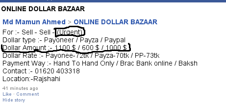 আমি এখানে একটা ফেসবুক এর পেজ এর এক মহান মানুষ এর একটা ডলার সেল করার বিজ্ঞাপন দেখালাম।