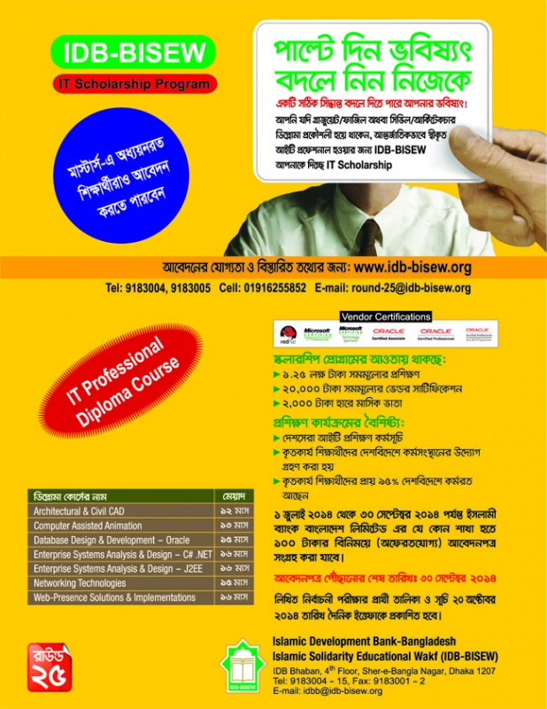 ২ লক্ষ+ টাকার আই,টি স্কলারশিপ নিন। IDB-BISEW দিচ্ছে এই সুযোগ।