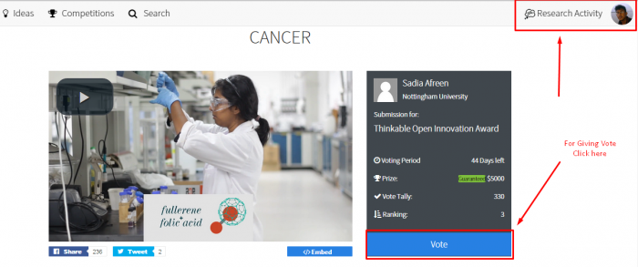 সবার আগেই জানা দরকার Thinkable.org ওয়েব এর কাজ আসলে কি ? Thinkable.org একটি অনলাইন রিসার্চ Idea sharing সাইট । বিভিন্ন দেশের রিসার্চ বা গবেষণার কাজে নিয়োজিত স্টুডেন্ট যারা সাধারণত কোন বিশ্ববিদ্যালয়ের অধীনে কিংবা কোন Organization এর অধীনে research করছে তারা তাদের আইডিয়া এখানে শেয়ার করে থাকেন । নতুন নতুন আইডিয়া এবং গবেষণার কাজে আরও বৈচিত্র্য আনার জন্য এই প্রথমবার তারা আয়োজন করেছে এক দারুন Competition এর যেখানে বিভিন্ন দেশের রিসার্চ কাজে নিয়োজিত স্টুডেন্টরা তাদের আইডিয়া শেয়ার করে জিতে নিতে পারে তাদের রিসার্চ এর জন্য বড় amount এর ফান্ড । তবে এই ফান্ড দেয়া হবে শুধু মাত্র রাঙ্কিং এ থাকা প্রথম বাক্তিকেই । প্রতিযোগিতায় অংশগ্রহণকারী স্টুডেন্টরা তাদের রিসার্চ এর উপরে ২-৩ মিনিটের একটি ভিডিও তৈরি করে এই সাইটে শেয়ার করে । পরবর্তীতে এই ভিডিও ওর উপর হয় Voting ।টানা ৬০দিন ধরে চলা এ ভোট এ যে স্টুডেন্ট ভোট এ প্রথম স্থান এ থাকবে সেই পাবে তার গবেষণার জন্য বড় amount এর ফান্ড যা সরাসরি thinkable.org তাকে দিয়ে থাকে ইউনিভার্সিটি বা Organization এর মাধ্যমে । এই ফান্ড এর পরিমাণ প্রায় 5000 ডলার । বিভিন্ন দেশের এই সকল প্রতিযোগীদের মধ্যে আছে আমাদের বাংলাদেশের ছাত্রী সাদিয়া আফরিন । বুয়েট এর ০২ ব্যাচ এর ছাত্রী সাদিয়া বুয়েট থেকে Chemical Engineering এ পাশ করে বর্তমানে পিএইচডি করছে Malaysia এর Nottingham University তে । তার গবেষণার বিষয় হল ক্যান্সার বিষয়ক যার শিরোনাম হল