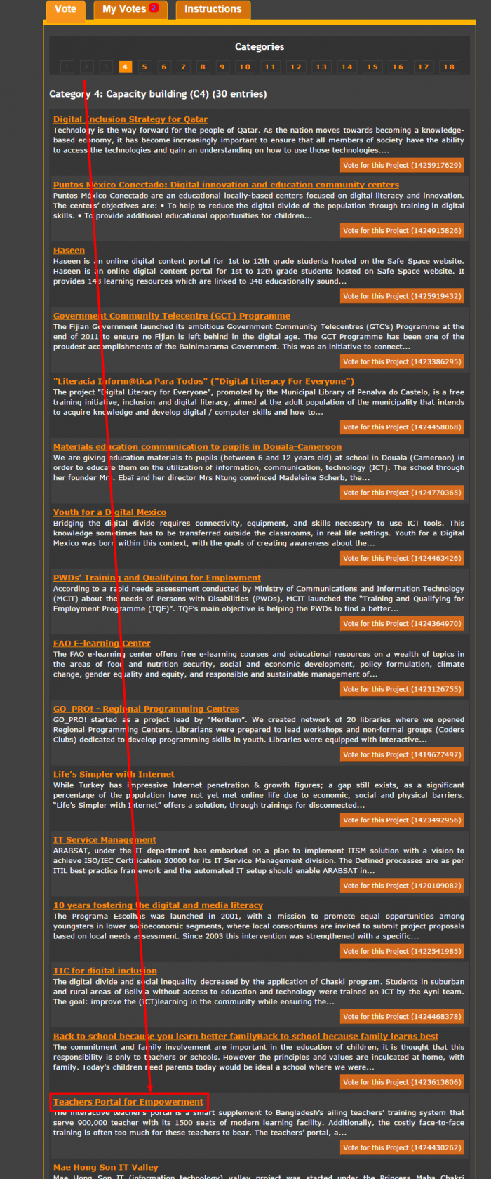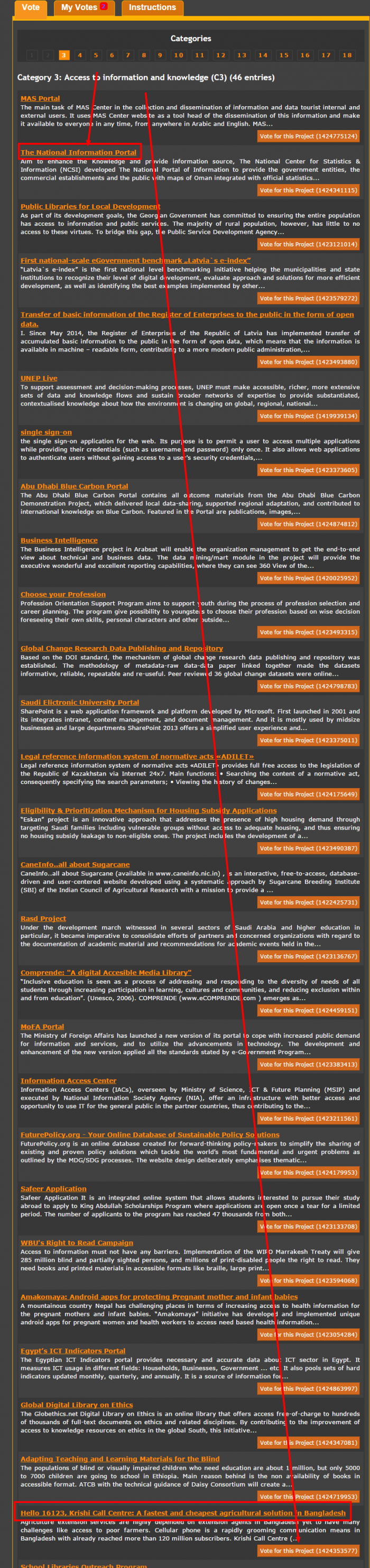 বাংলাদেশ ক্যাটাগরি খুজে পেতে আরও সহযোগিতা করতে নিচে সব গুলো ক্যাটাগরির একটি ফাইল দিয়ে দিলাম (দেখে ভোট দিবেন, যদিও উপরের স্ক্রিন শটগুলো দেখে ভোট দিতে আরও সুবিধা হবে)