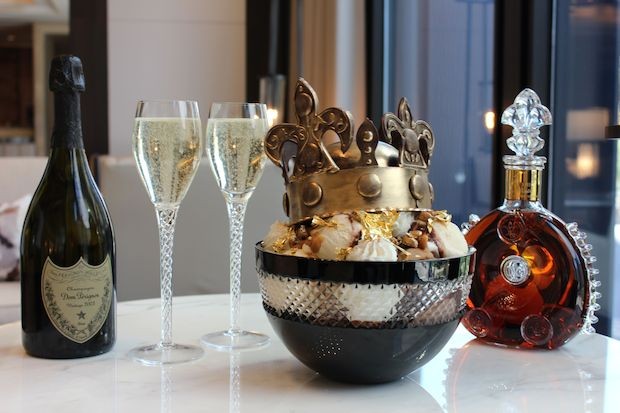 vanilla ice cream, whipped cream, chocolate truffles, French macaroons, special sorbet, gold leaves, dark chocolate brownies and chocolate vodka sauce এগুলোর সংমিশ্রনে তৈরি।না দাম এজন্য নয়,২৪ ক্যারেট সোনা দিয়ে আবৃত করা।(আসলে এরা মূলত স্বররন ব্যবসায়ী)।