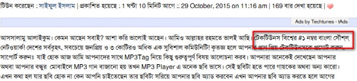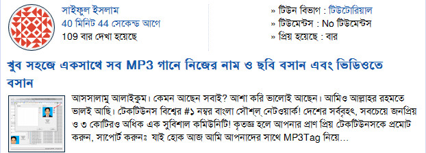 এই টিউন দিয়েছে সাইফুল ইসলাম নামে এক লোক অথচ এই টিউন আগেই সন্দ্বিপ কুন্ডু টিউনার ভাই দিয়েছে, নিচে স্কীনশূট দেখুন
