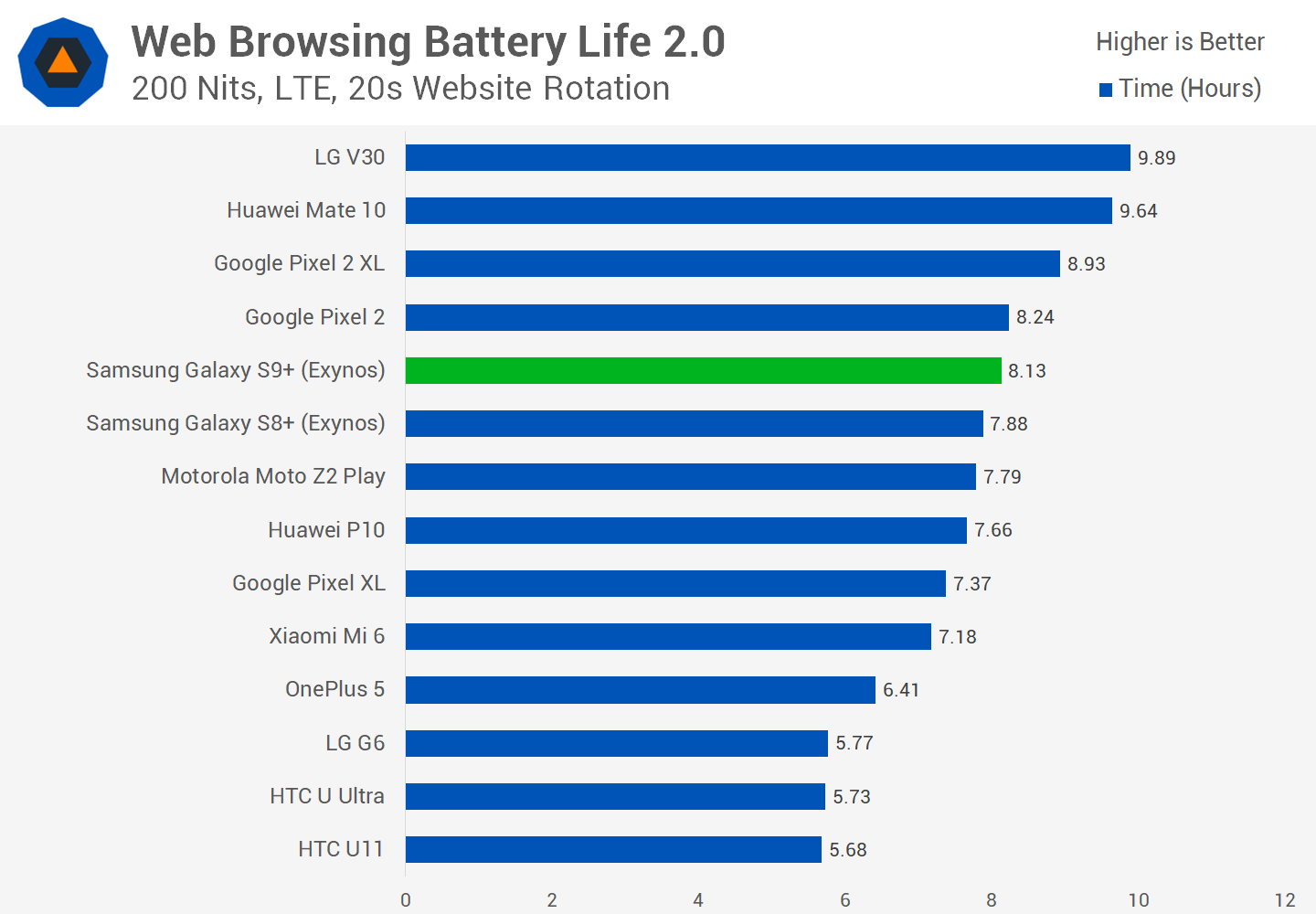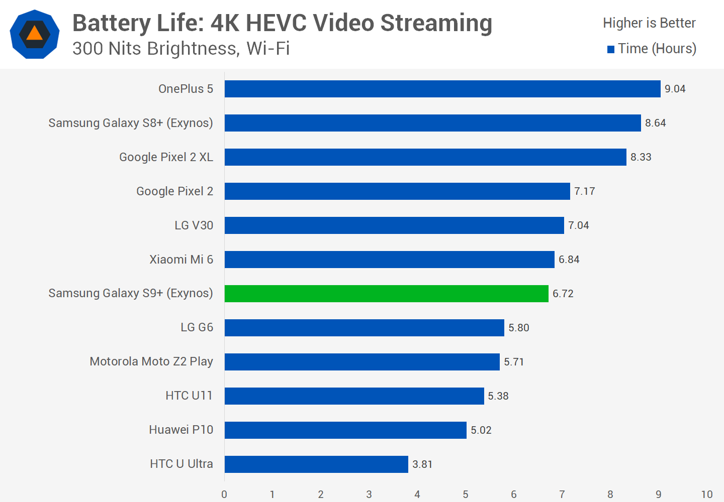 নেট ব্রাউজিংয়ের টেস্টে আপনি দেখতে পাচ্ছেন যে এখানে WiFi ও একটি 4G LTE নেটওর্য়াক ব্যবহৃত হয়েছে। ওয়াই ফাই দিয়ে নেট ব্রাউজিংয়ের সময় ডিভাইসটিতে বেশি চার্জ ক্ষয় হয়েছে। কিন্তু অনান্য ডিভাইসগুলো এর থেকে ভালো পারফরমেন্স করছে আপনি দেখতে পাচ্ছেন। অন্যদিকে ৪জি নেটওর্য়াকিংয়ে ব্রাউজিংয়ে এস ৮ প্লাসকে অতিক্রম করতে সক্ষম হলেও এস ৯ প্লাস মাত্র ৩ শতাংশে এগিয়ে রয়েছে যেটা কোনো ভালো কথা নয়। এর মূল কারণ হলো Exynos প্রসেসরটি তুলনামূলক ভাবে স্ন্যাপড্রাগনের থেকে অনেক ব্যাটারি ক্ষয় করে তাই। অন্যদিকে ভিডিও স্ট্রিমিংয়ের ক্ষেত্রে আপনি দেখতে পাচ্ছেন যে এস ৯ প্লাসের থেকে এস ৮ প্লাস দুই ঘন্টা বেশি ব্যাটারী ব্যাকআপ আপনাকে দিতে পারবে।