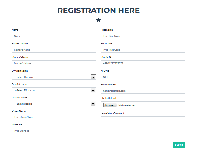 যে যে তথ্যগুলো চাওয়া হয়েছে তা সম্পন্য করে "Submit" এ ক্লিক করুন।