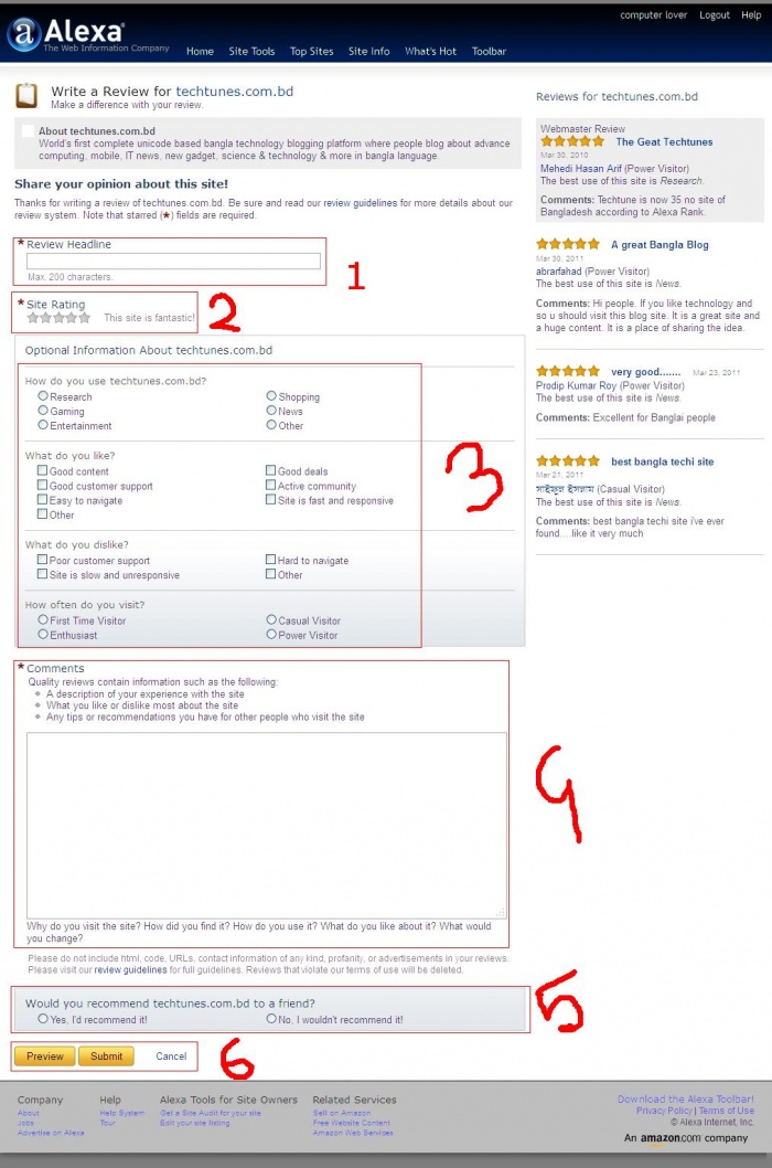 এবার আশুন সবাই মিলে এলেক্সা তে টেকটিউনস এর জন্য রিভিও লিখি । টেকটিউনস কে বাংলাদেশের ১ নম্বর সাইট হতে সাহায্য করি ।