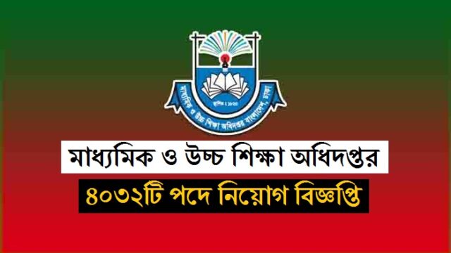 মাধ্যমিক ও উচ্চ শিক্ষা অধিদপ্তর কর্তৃক নতুন একটি নিয়োগ বিজ্ঞপ্তি প্রকাশিত হয়েছে। নিয়োগ সার্কুলার অনুযায়ী অফিস ও শিক্ষা প্রতিষ্ঠানসমূহের জন্য রাজস্বখাতে শূন্যপদের বিপরীতে অস্থায়ী ভিত্তিতে নিম্নবর্ণিত পদসমূহ পূরণের লক্ষ্যে বাংলাদেশী নাগরিকদের নিকট হতে দরখাস্ত আহবান করা যাচ্ছে। আগ্রহী প্রার্থীদের নির্ধারিত তারিখের মধ্যে যথাযথভাবে অনলাইনের মাধ্যমে আবেদন করার জন্য অনুরোধ করা হল। মাধ্যমিক ও উচ্চ শিক্ষা অধিদপ্তর নিয়োগ সার্কুলার বর্ণিত শর্তাবলী অনুসরণ ও নিয়ম-কানন মানা আবশ্যকীয়।