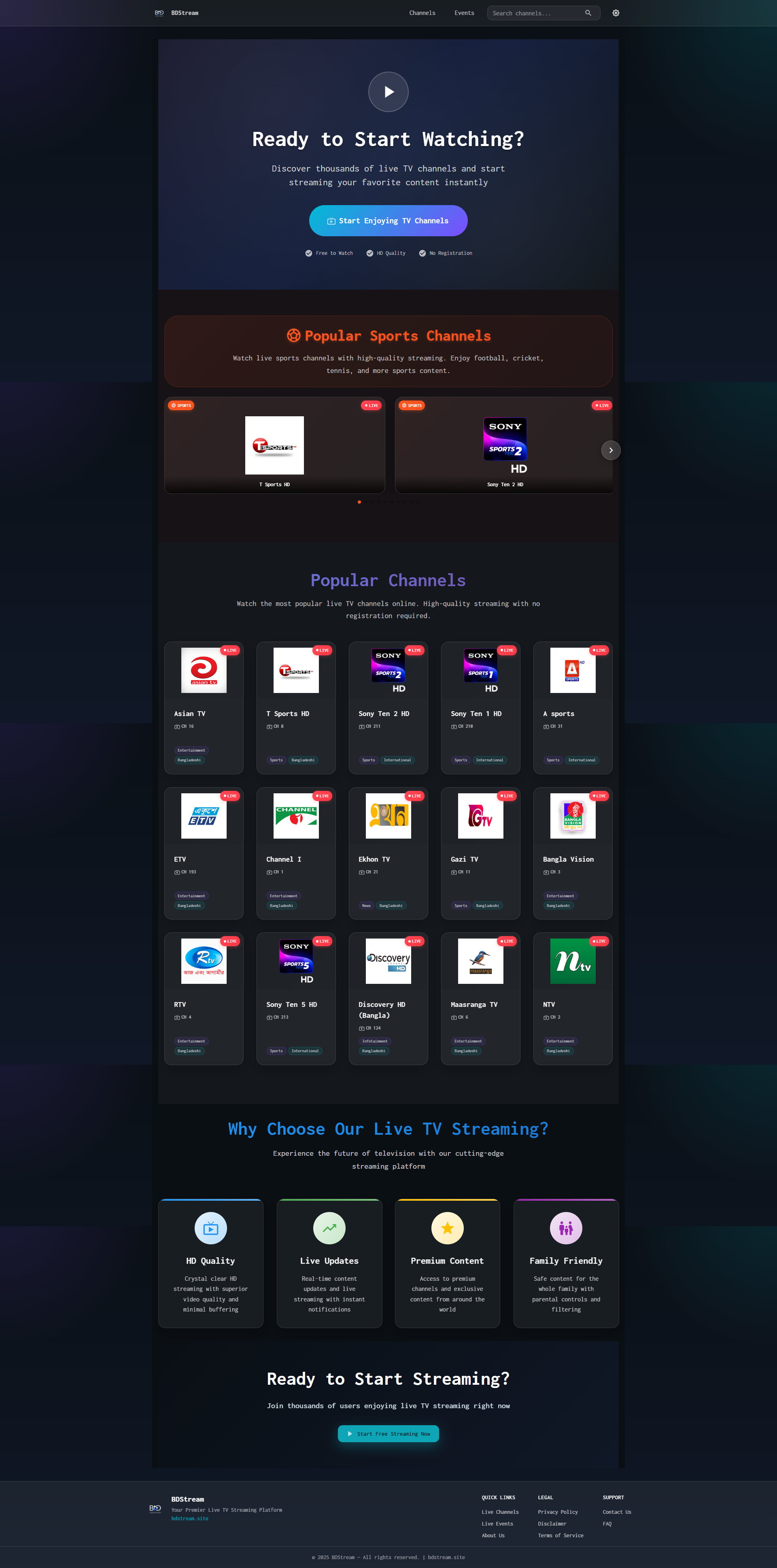 একটা স্ট্রিমিং সাইটের আসল শক্তি তার কনটেন্টের ভান্ডার। BDStream এক্ষেত্রে হতাশ হওয়ার কোনো সুযোগই রাখেনি। বিশেষ করে যারা খেলাধুলার ভক্ত, তাদের জন্য এটি এক কথায় সোনায় সোহাগা।