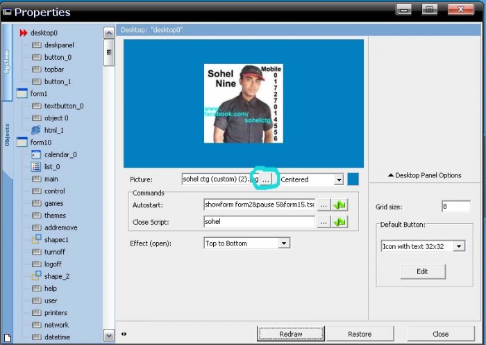Properties আসার পর Picture এ আপনার ছবিটি দেখিয়ে দিন । ব্যাস ডেস্কটপের লোগোতে আপনার ছবি সেট হয়ে এ যাবে।