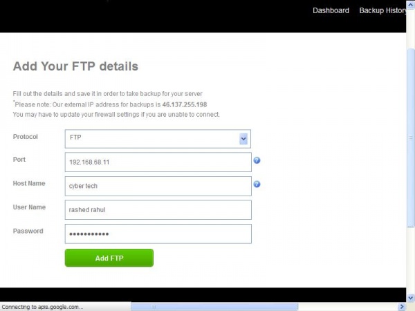 ➡ ওয়েবসাইট ব্যাকআপ এর যন্ন আপনার ওয়েবসাইট ।পোর্ট নং।হোস্ট এরনাম ও ftp সাইট এর থিকানা দিন।ওয়েবসাইট এ আপনি একটি সাধারন আইপি recomended পাবেন।সেটি জেনারেল ভাবে ব্যবহার করবেন।