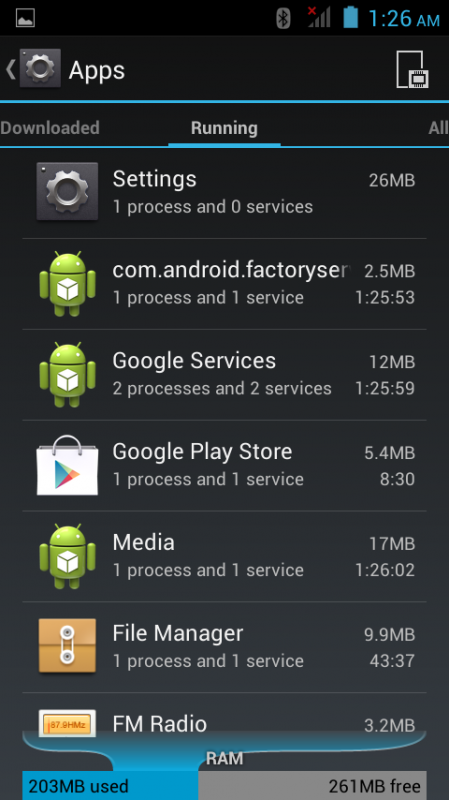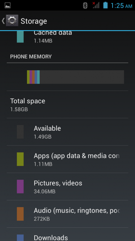 প্রায় ২৬১মেগাবাইট এর উপরে ব্যবহারযোগ্য। এছাড়াও ৪ গিগাবাইট রম এর মধ্যে প্রায় ১.৫৮গিগাবাইট এর মতো ব্যবহার করা যাচ্ছে।