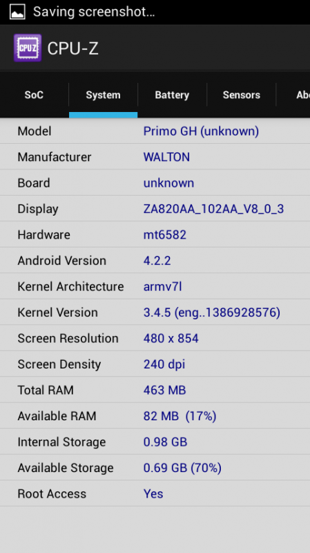 Walton Primo GH ডিভাইসটিতে স্ক্রিন সাইজ হল