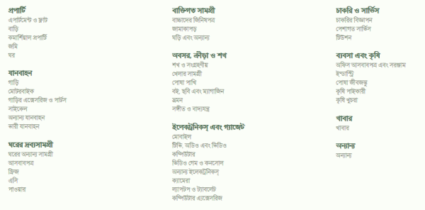 বিক্রয়ডটকম এর বিভিন্ন শ্রেণী বা ক্যাটাগরি