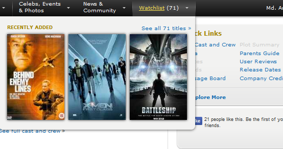 এটা Watchlist । এখানে ৭১টা মুভি আমি যোগ করেছি , প্রতিটার রিভিউও করেছি।
