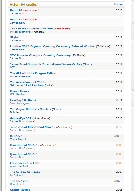 Daniel Craig এর যত মুভি তার লিস্ট পাবেন নিচে আরও ছিল কিন্তু স্কিনশট ছোট হয়ে যায় বেশী দিলাম না তাই।