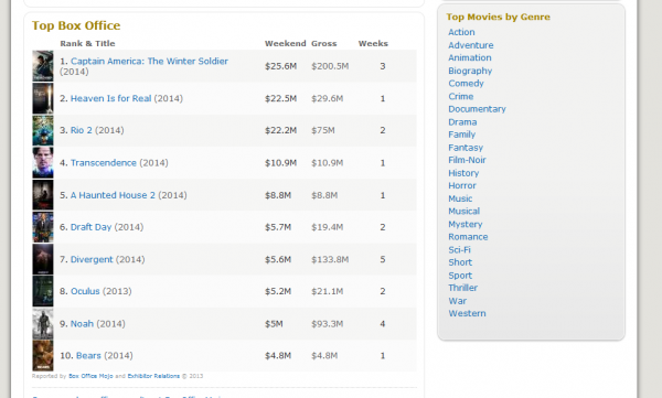Box Office List. ডানে Genre অনুসারে সেরা ছবির List গুলি পাবেন।