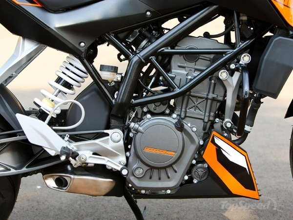 কেটিএম ডিউক ১২৫ এ একটা ১২৪.৭ সিসির লিকুইড কুলড ইন্জিন রয়েছে যেটা সর্বোচ্চ 15 Bhp @ 10500 rpm শক্তি উৎপন্ন করতে পারে এবং এটি ম্যাক্সিমাম ১২ N/M টর্ক উৎপন্ন করতে পারে । অতএব , আমরা দেখতে পাচ্ছি যে বাইকটি ১২৫ সিসির হলেও বাইকটির ইন্জিন কনফিগারেশন অনেকটা বাংলাদেশের ১৫০ সিসির বাইকের থেকে অনেক পাওয়ারফুল উন্নত । বাইকটির ইন্জন ঠান্ডা করার জন্য এক ধরণের লুব্রিকেন্ট ইউজ করা হয় যেটা বাইকের ইন্জিনকে সবসময় ঠান্ডা রাখতে সহায়তা করে । বাইকটিতে ফুললি ইলেকট্রিক ইগনিশন সিস্টেম রয়েছে যেটাতে ডিজিটাল টাইমিং এডজাস্টমেন্ট ফিচারও এড করা রয়েছে । এটি সিঙ্গেল সিলিন্ডারের একটা ফোর স্ট্রোক ইন্জিন । বাইকটিতে একটা ৬ স্পীড গিয়ারবক্স রয়েছে যেটা ওয়েট মাল্টি ডিস্ক ক্লাস বা মেক্যানিক্যালি অপারেটেড । বাইকটি ইলেকট্রিক ও কিক উভয় সিস্টেমেই স্টার্ট করা যায় ।