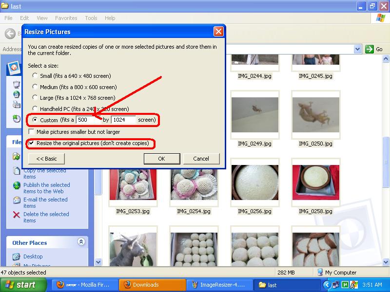এরপর Customএ ক্লিক করে পছন্দ মত মান বসান। যেমন আমি বসালাম ৫০০। এখোন ওকে দিলেই পেয়ে যাবেন আপনার নতুন কপি। যদি আগের হাই রেজুলেশন ছবিগুলো আর দরকার না হয় তবে Resize the Original Pictures(Don't Copies) এ ক্লিক করুন।