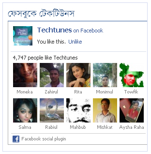 ৪. টেকটিউনস ফানপেজ লাইক বক্স। এটা টেকটিউনস এর হোম পেজেই আছে। ভিজিটররা এটার মাধ্যমে খুব সহজেই টেকটিউনসকে লাইক করতে পারবে।