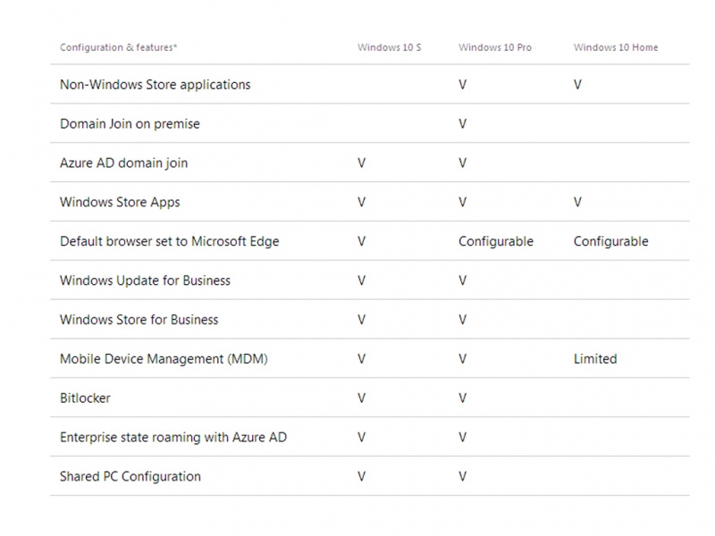 উইন্ডোজ 10 এস উইন্ডোজ 10 প্রো এর একটি বিশেষ কনফিগারেশন যা একটি পরিচিত, উৎপাদনশীল উইন্ডোজ অভিজ্ঞতা প্রদান করে যা নিরাপত্তার পাশাপাশি কর্মক্ষমতা বৃদ্ধি করে। উইন্ডোজ স্টোরের আকর্ষণীয় অ্যাপ্লিকেশনগুলি ব্যবহার নিশ্চিত করে যে আপনি মাইক্রোসফট এজ দিয়ে নিরাপদে ব্রাউজ করছেন। দিনের শুরু থেকে শেষ পর্যন্ত উইন্ডোজ 10 এস আপনাকে দ্রুত এবং নিরাপদ জীবন যাপন করতে দিচ্ছে।