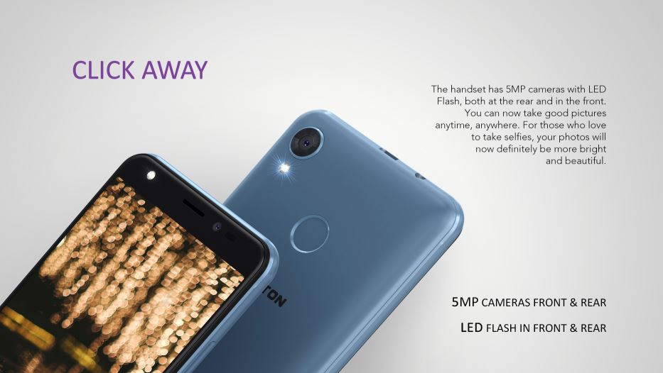 ডিভাইসটির পিছনে/রিয়ার প্যানেলে রয়েছে ৫ মেগাপিক্সেল BSI সেন্সরযুক্ত ক্যামেরা। এই ক্যামেরায় সিঙ্গেল এলইডি ফ্ল্যাস এবং অটোফোকাস এর মত সুবিধা থাকছে। রিয়ার ক্যামেরার শুটিং মোড গুলো হলঃ প্যানারোমা, এইচডিআর, ফেস বিউটি এবং নরমাল মোড। ফ্রন্ট ক্যামেরার শুটিং মোড গুলো হলঃ এইচডিআর, ফেস বিউটি এবং নরমাল মোড।