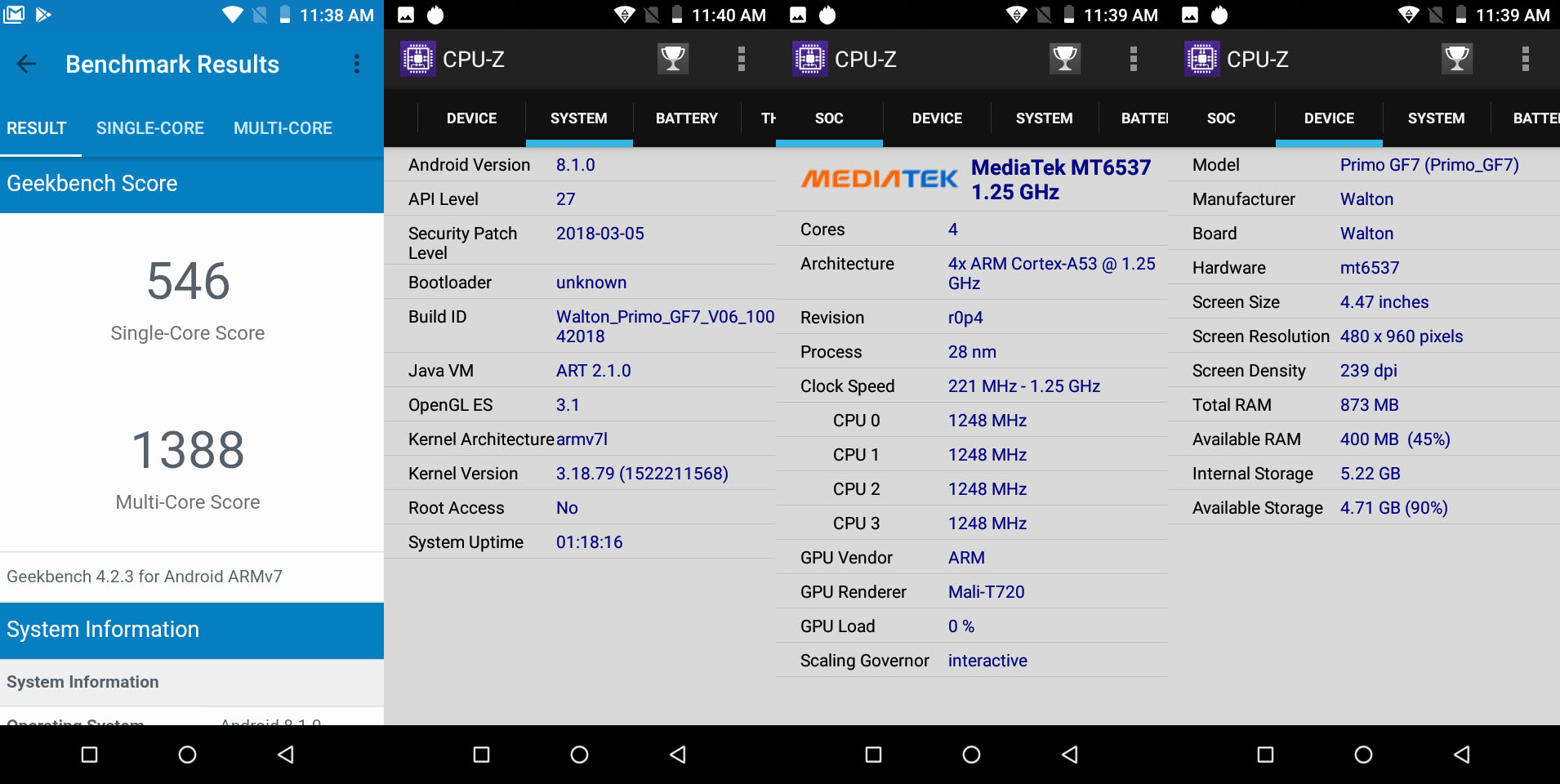 গীগবেঞ্চ অ্যাপে সিঙ্গেল কোরে ডিভাইসটির স্কোর এসেছে ৫৪৬। আর মাল্টি কোরে এর স্কোর এসেছে ১৩৮৮। স্পেসিফিকেশন হিসেবে বেঞ্চমার্ক স্কোর এভারেজ।
