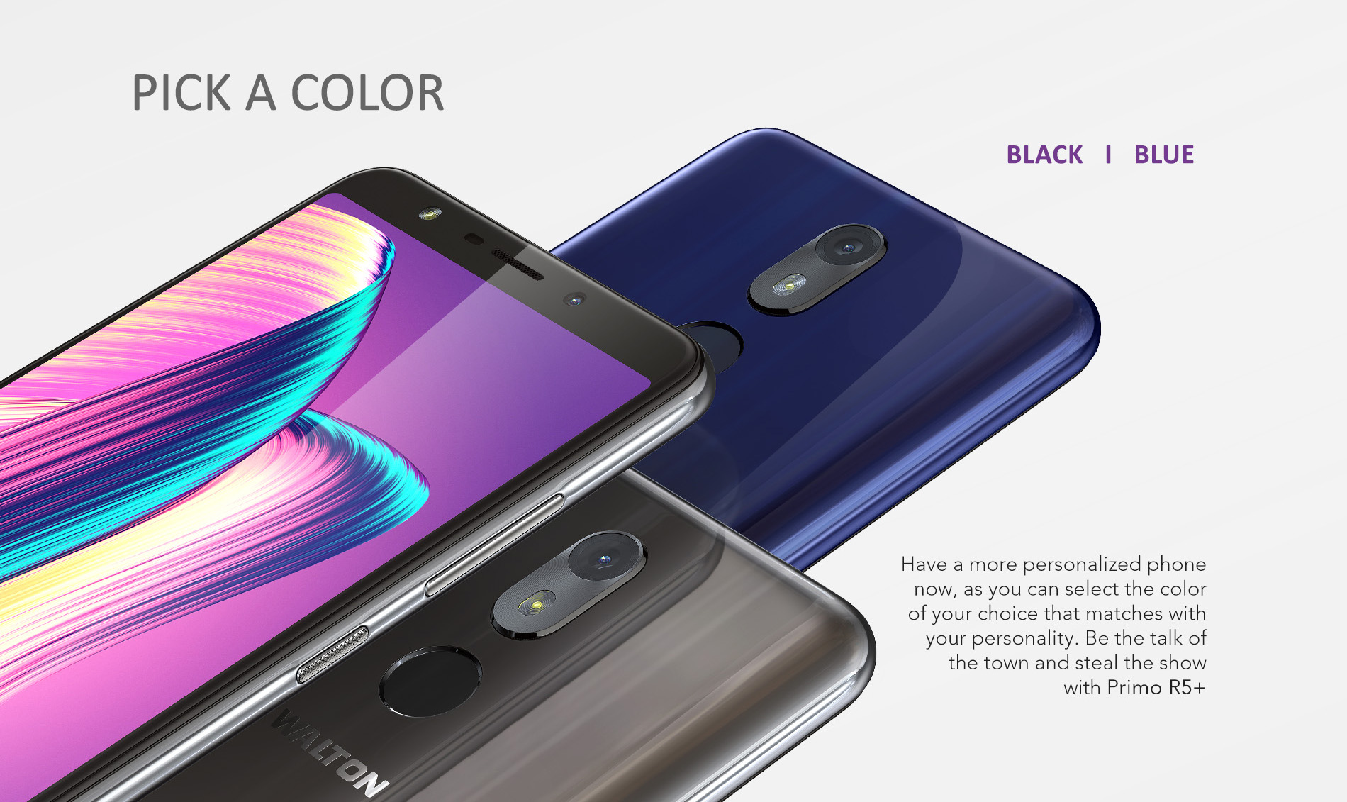 যখনই কোন ফোনের প্রসঙ্গ আসে অবিচ্ছেদ্য ভাবে সেখানে অংশগ্রহন করে ফোন এর কালার। একটি ফোনের কালার ব্যক্তির বাক্তিত্তকে ফুটিয়ে তোলে। আর সে কারনেই গ্রাহকের চাহিদা অনুসারে Primo R5+ ডিভাইসটি আসছে দুইটি আকর্ষণীয় কালার এর সাথে - ব্ল্যাক এবং ব্লু। এই দুটি কালার আপনার পছন্দের সঙ্গে তাল মিলিয়ে আপনাকে আপনার বাক্তিত্ত প্রকাশ এর সুযোগ করে দিবে।