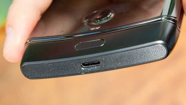 পুরাতন Razr v3 ফোনের আলোকে তৈরি নতুন এই ফোনটি আসলেই প্রশংসার দাবি রাখে, এবং এ ফোনটিও তার উপরের অংশ খুব ভাল ভাবে নিচের অংশের সাথে মিশে যায় কিন্তু ডিজাইনে একটু জটিলতা আছে। আপনি ফোনের নিচের চিবুকের সাথে একটি USB-C পোর্ট পাবেন যার মাধ্যমে আপনি চার্জ দেয়া অথবা ডাটা আদান-প্রদান করতে পারবেন এবং এটি একটি স্পিকারের সাথে যুক্ত। এবং মটোরোলা জানায় তারা এই চিবুককে অডিও স্পিকার হিসাবে খুব ভালভাবে ব্যবহার করেছে।