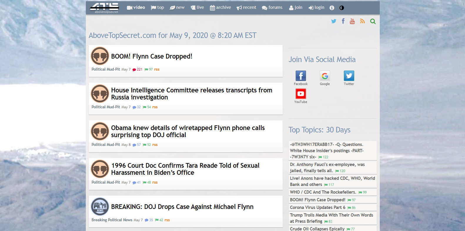 এই Above Top Secret ওয়েবসাইটে বিভিন্ন ব্যক্তির ডিসকাস করার মত কন্সপাইরেসি থিউরির উপর, নিউজ, ভিডিও, এবং ফোরাম রয়েছে। বর্তমানে ঘটে যাওয়া বিভিন্ন ঘটনার উপর থিউরি পাবেন এখানে। এখানে ফোরামের মাধ্যমে ইউজাররাও নিজেদের বিভিন্ন তত্ত্ব শেয়ার করতে পারে। ওয়েবসাইটতে বেশিরভাগ থিউরিই রাজনৈতিক বিষয়ের উপর। এই ওয়েবসাইটে ব্রাউজ করে আপনি ফোরামের মাধ্যমে কন্সপাইরেসি থিউরির উপর জ্ঞান বাড়াতে পারবেন।