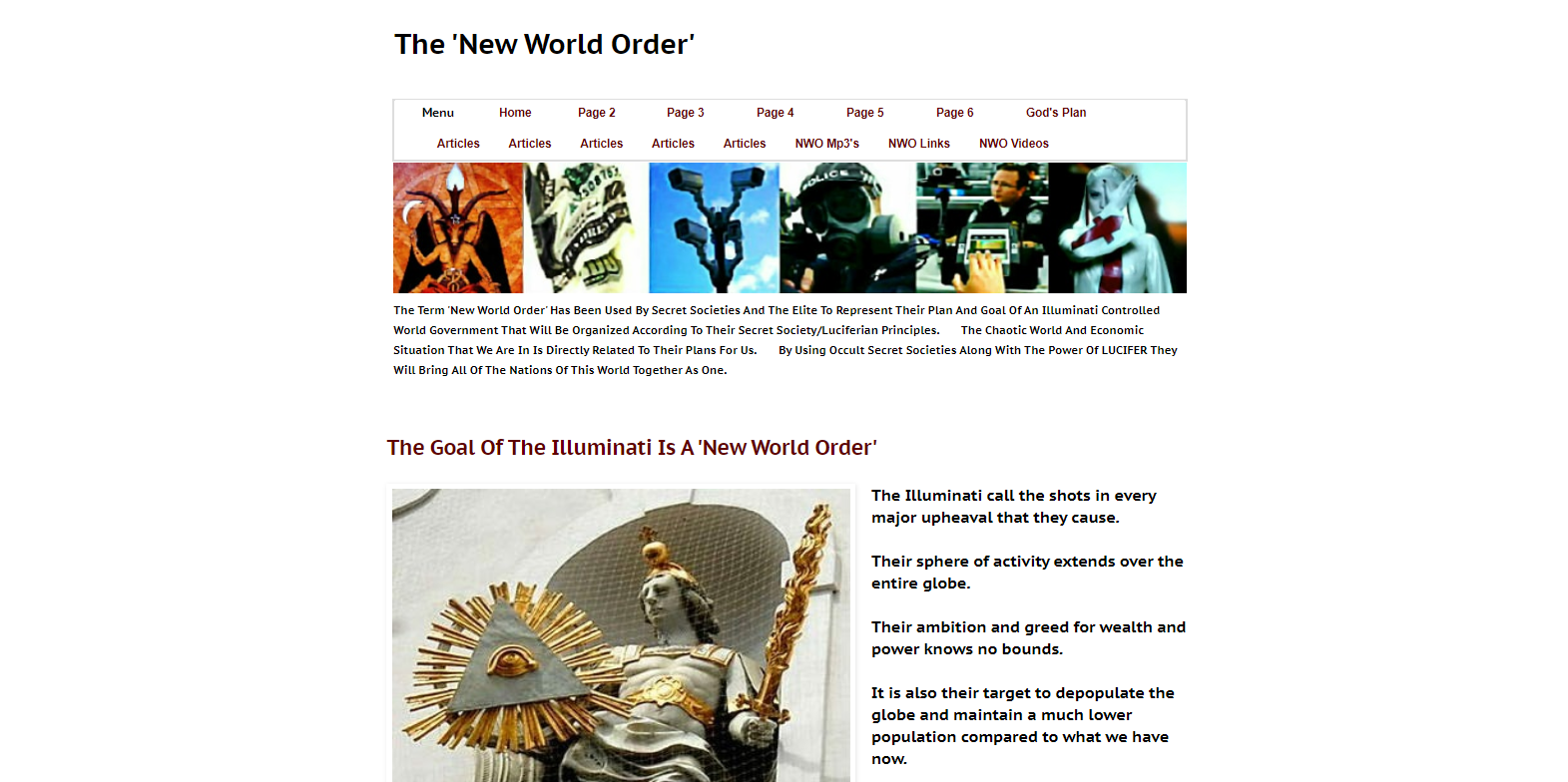 এই The Coming New World Order ওয়েবসাইটেও পাবেন কন্সপাইরেসি থিউরির বিশাল কালেকশন। তবে এই ওয়েবসাইটে ইলুমিনাতির উপর বেশি ফোকাস করা হয়েছে। আপনি বিভিন্ন থিউরি সম্পর্কে জ্ঞান নিতে চাইলে এই ওয়েবসাইটে যান এবং ব্রাউজিং করতে থাকুন।