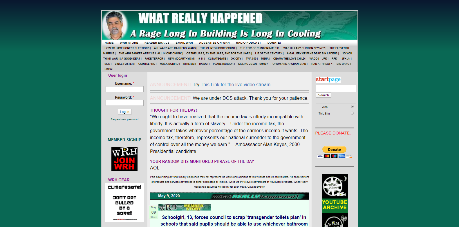 What Really Happened ওয়েবসাইটে আপনার জানাশুনা বিভিন্ন Conspiracy Theory খুঁজে পাবেন। জনপ্রিয় থিউরি গুলো পেয়ে যাবেন হোমপেজের টপে। এই What Really Happened ওয়েবসাইটের নিজস্ব রেডিও শো আছে। এখানে রিডারদের লেটার সেকশন আছে যেখানে পাঠকদের চিঠি গুলো প্রকাশ করা হয়। What Really Happened ওয়েবসাইটে আপনি বেশির ভাগ থিউরি পাবেন রাজনীতি এবং রাজনৈতিক ব্যক্তিদের নিয়ে।