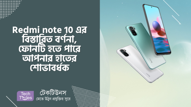 Xiaomi এর Redmi সিরিজের ফোনগুলো বাজারে কতটা আলোরন সৃষ্টি করেছে তা আপনারা নিশ্চয় জানেন। তার চেয়ে বেশি সারা ফেলেছে Redmi note সিরিজের ফোনগুলো। আমাদের দেশে সর্বশেষ যে ফোনটি এসেছে Redmi note সিরিজের তা হলো Redmi note 10। এটি চমৎকার সুন্দর একটা স্মার্টফোন। আমার কাছে তো ভালোই লেগেছে।