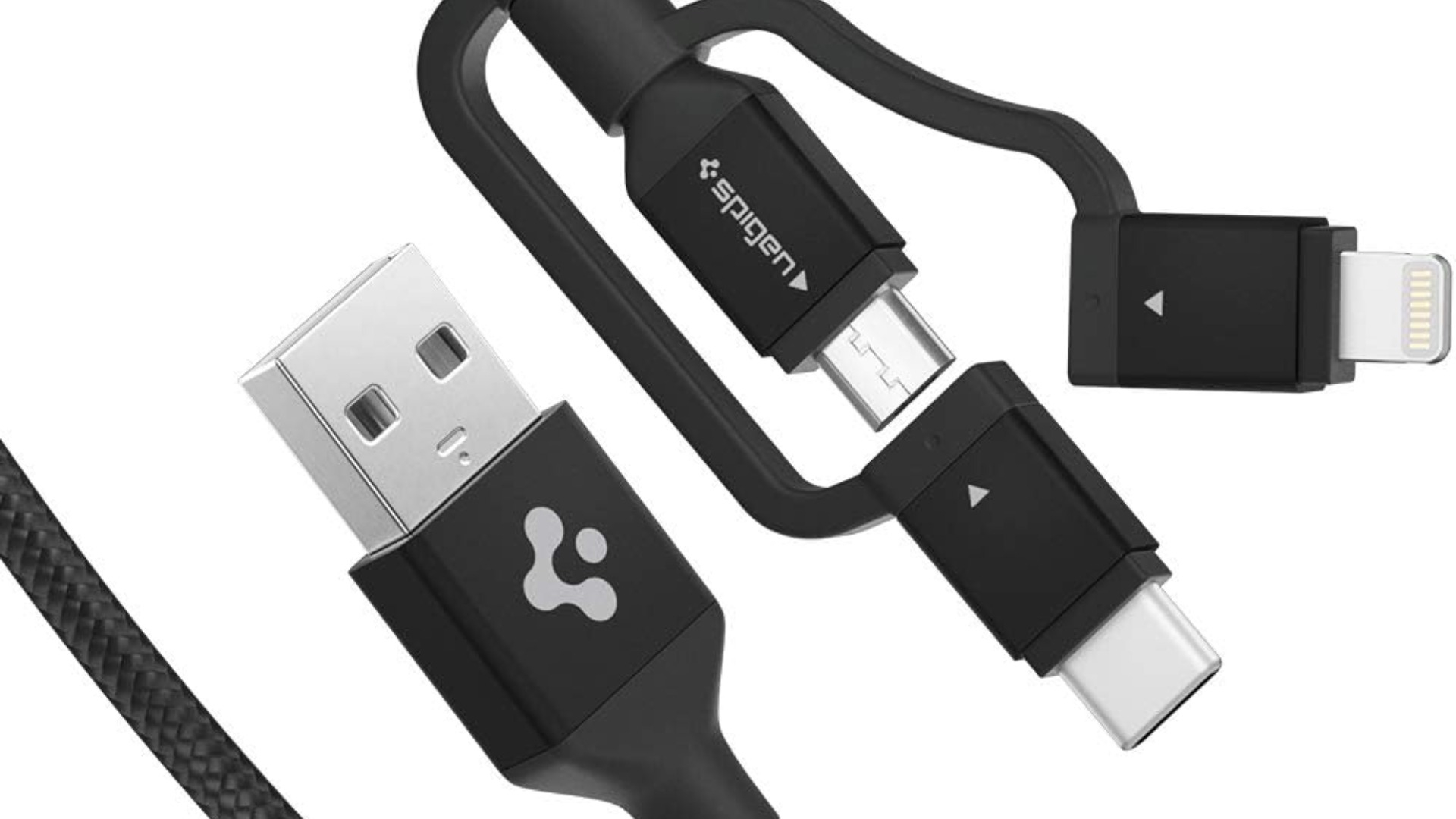 আপনি বৈচিত্র্যময় ক্যাবল খুঁজে থাকেন তাহলে আপনার জন্য রয়েছে Spigen এর DuraSync 3 in 1 Universal Charger ক্যাবল। এখানে আপনি তিনটা ইন্টারচেঞ্জেবল কানেক্টর পাবেন যাতে USB-C, Lightning, এবং micro USB সাপোর্ট করবে।
