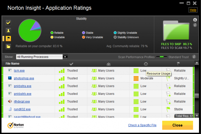 সিস্টেম স্লো হয়ে যাওয়া প্রায় অ্যান্টি-ভাইরাস সফটওয়্যারেরই একটি বড় সমস্যা। অনেক ব্যবহারকারী কেবল এই সমস্যার মুখোমুখি হতে চান না বলে অ্যান্টি-ভাইরাস সফটওয়্যার ইন্সটল না করে নিজেকে ঝুঁকির দিকে ঠেলে দিয়ে থাকেন। কিন্তু নরটন অ্যান্টি-ভাইরাস ও ইন্টারনেট সিকিউরিটি ২০১২ এ দিক দিয়ে এগিয়ে গেছে। খুব কম রিসোর্স ব্যবহার করে বিধায় সিস্টেম স্লো-ডাউন খুব একটা হয়ই না। আমি প্রথমবার ইন্সটল করে রিস্টার্ট করার পর একটু সময় নিয়েছিল বুটআপ হতে। কিন্তু তারপর থেকে সিস্টেম আগের মতোই দ্রুতগতির রয়েছে। তবে ফুল সিস্টেম স্ক্যান করতে দিলে ঐ সময়টুকু একটু বেশি রিসোর্স খরচ করে নরটন। তারপরও যদি আমার সন্দেহ হয় যে নরটন অন্য সময়ও সিস্টেম স্লো করে দিচ্ছে, আমার সন্দেহ দূর করার জন্য নরটনে রয়েছে রিসোর্স ইউসেজ দেখার সুবিধা, যেখানে নরটন সিস্টেমের কতটুকু রিসোর্স ব্যবহার করছে তা দেখা যায়।