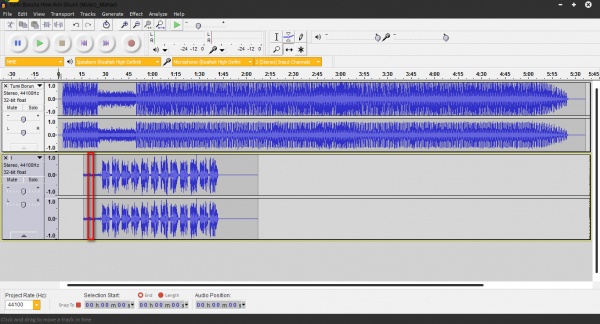এবার আপনার পছন্দের Karaoke টি মাউসে সাহায্যে ক্লিক করে এনে Audacity'র মধ্যে ছেড়ে দিন এবং রেকর্ড বাটনে ক্লিক করুন।